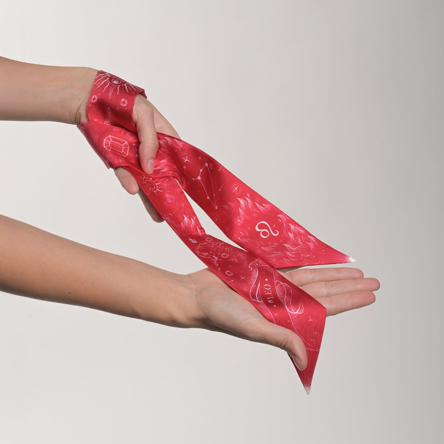 Celebrate your unique cosmic signature with our twill scarves from the zodiac collection. Crafted from 100% luxurious silk twill fabric and available in a vibrant red and white, each scarf represents one of the twelve zodiac signs, offering a chic way to express your individuality and endless styling possibilities: Tie it at the neck, wrap it around your wrist or handbag, weave it into your hair. However you wear it, the zodiac twill scarf adds a touch of personal magic and timeless style to any look.